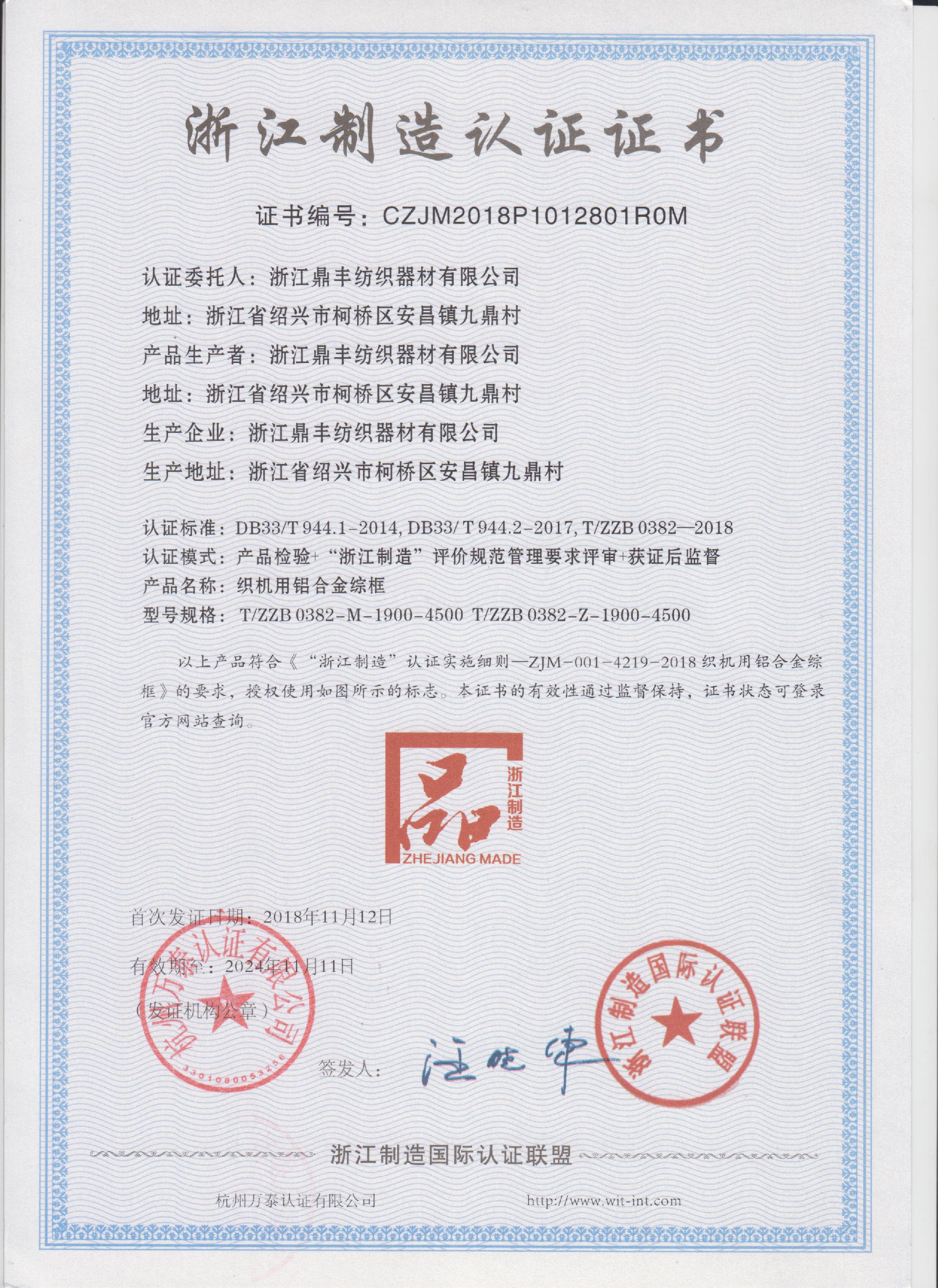 公司現(xiàn)有固定資產(chǎn)6000余萬元,員工300余人,現(xiàn)具有年產(chǎn)噴氣異型筘12萬米,劍桿筘32萬米,噴水筘5萬米,綜框20萬片,鋼片綜2億片,停經(jīng)片1.5億片, 織軸1.2萬套的生產(chǎn)能力。公司“越泉”商標(biāo)被評為“中國馳名商標(biāo)”。公司通過ISO9001 :2015國際質(zhì)量體系認(rèn)證,ISO14001:2015國際環(huán)境管理體系認(rèn)證,ISO45001:2018國際職業(yè)健康安全管理體系認(rèn)證,噴氣織機用鋼筘和織機用鋁合金綜框獲得“浙江制造”品牌認(rèn)證,公司擁有自營進出口權(quán),產(chǎn)品暢銷全國并遠銷印度、巴基斯坦、土耳其、埃及、哥倫比亞、意大利等國家和地區(qū)。